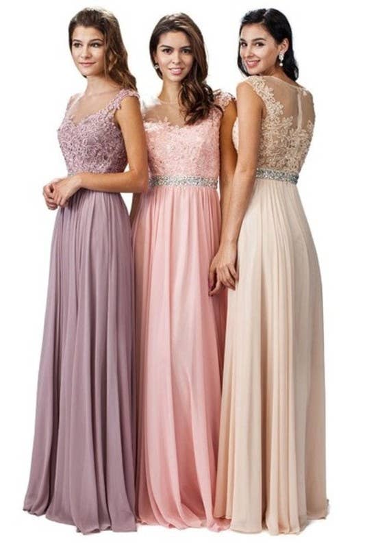 Sequined Lace Bodice Gown with Cap Sleeves and Beaded Waistband Dress