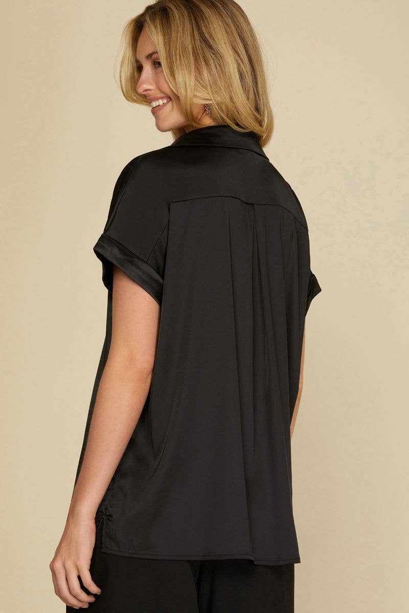 DROP SHOULDER BUTTON DOWN FRONT POCKET SHIRT TOP