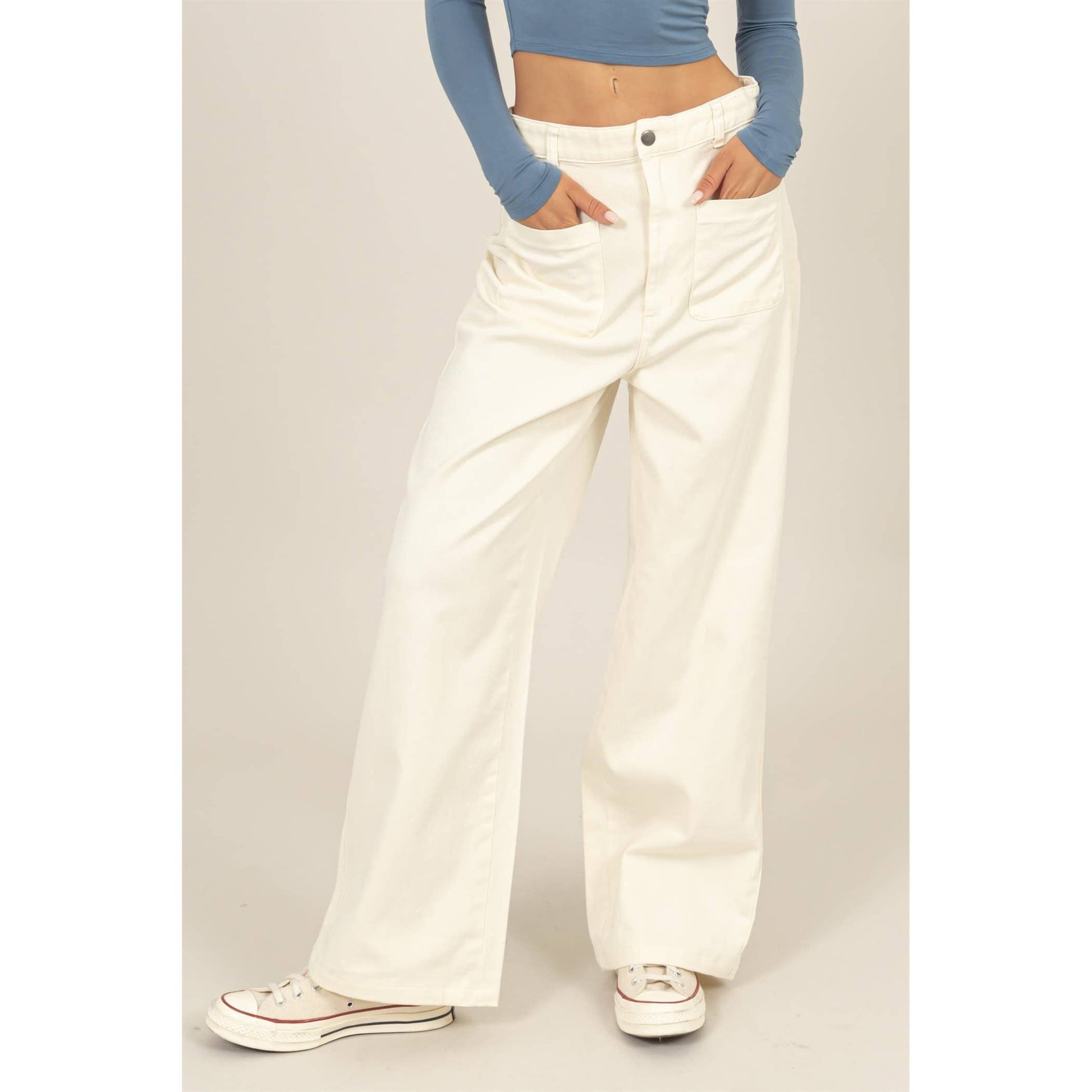These Have A Wide-Cut Design That's Composed Of Cotton Twill, Featuring A High Waist With Top Button Closure, Belt Loops And An Elasticated Back For A Comfortable Fit. Front Patch Pockets Finish The Look. 100% Cotton Model Is 5' 9" Tall, 32" Chest, 23" Waist And 35" Hips And Wearing A Size Small Imported. Designed In The USA