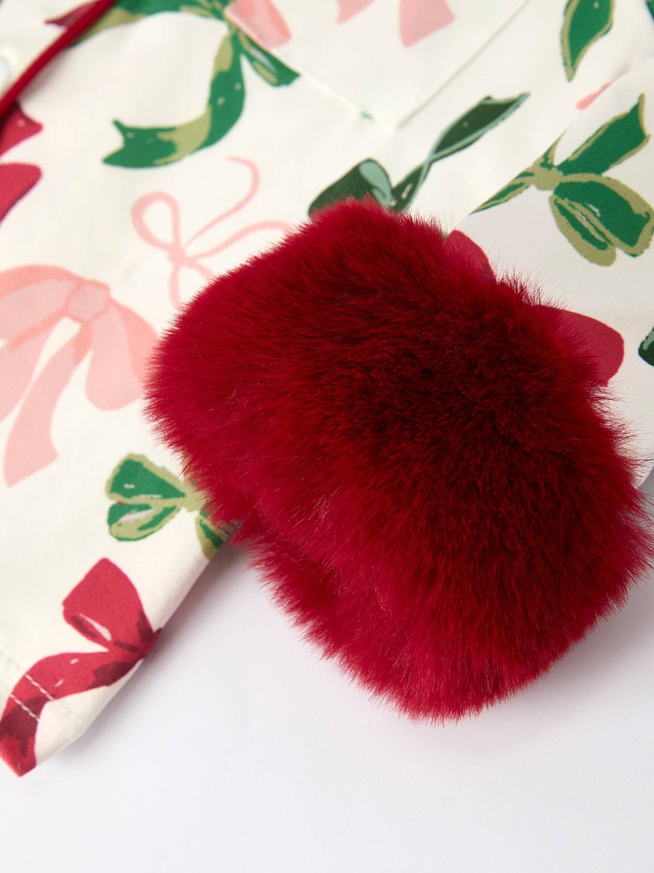 Holiday Bow Print Christmas Pajama Set – Girls Cozy Red Trim Sleepwear
