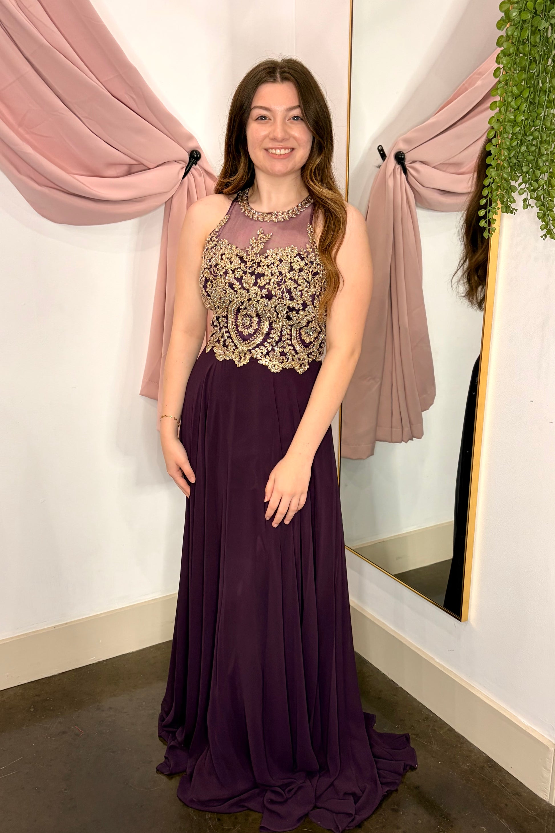 Plum Illusion Halter Neckline and A-Line Skirt ~ Small