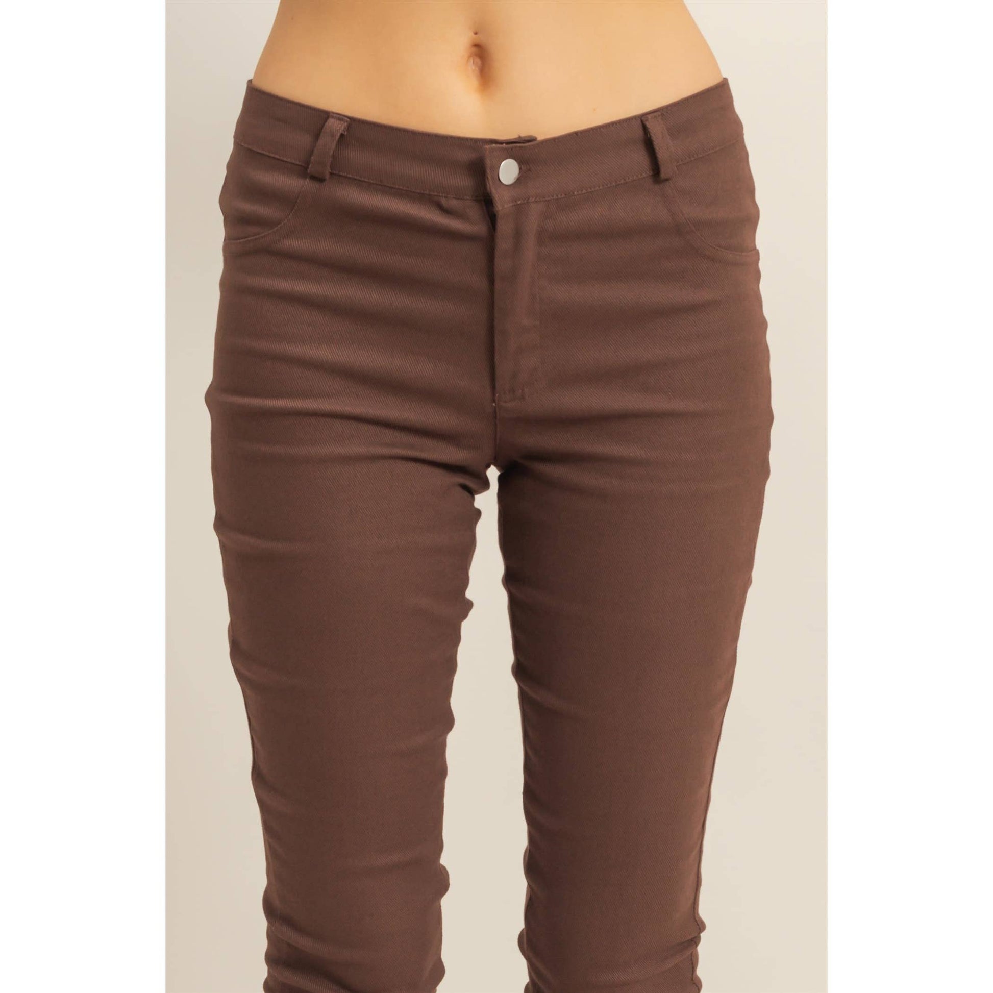 Featuring a form-fitting silhouette and a trendy low-rise waistline, these pants are perfect for achieving a bold yet sophisticated look.Dress them up with a leather jacket and heels or keep it casual with a graphic tee and boots. 97% Cotton 3% Spandex Model Is 5' 7" Tall, 32" Chest, 25" Waist, 34" Hips And Wearing A Size Small Imported. Designed In The USA