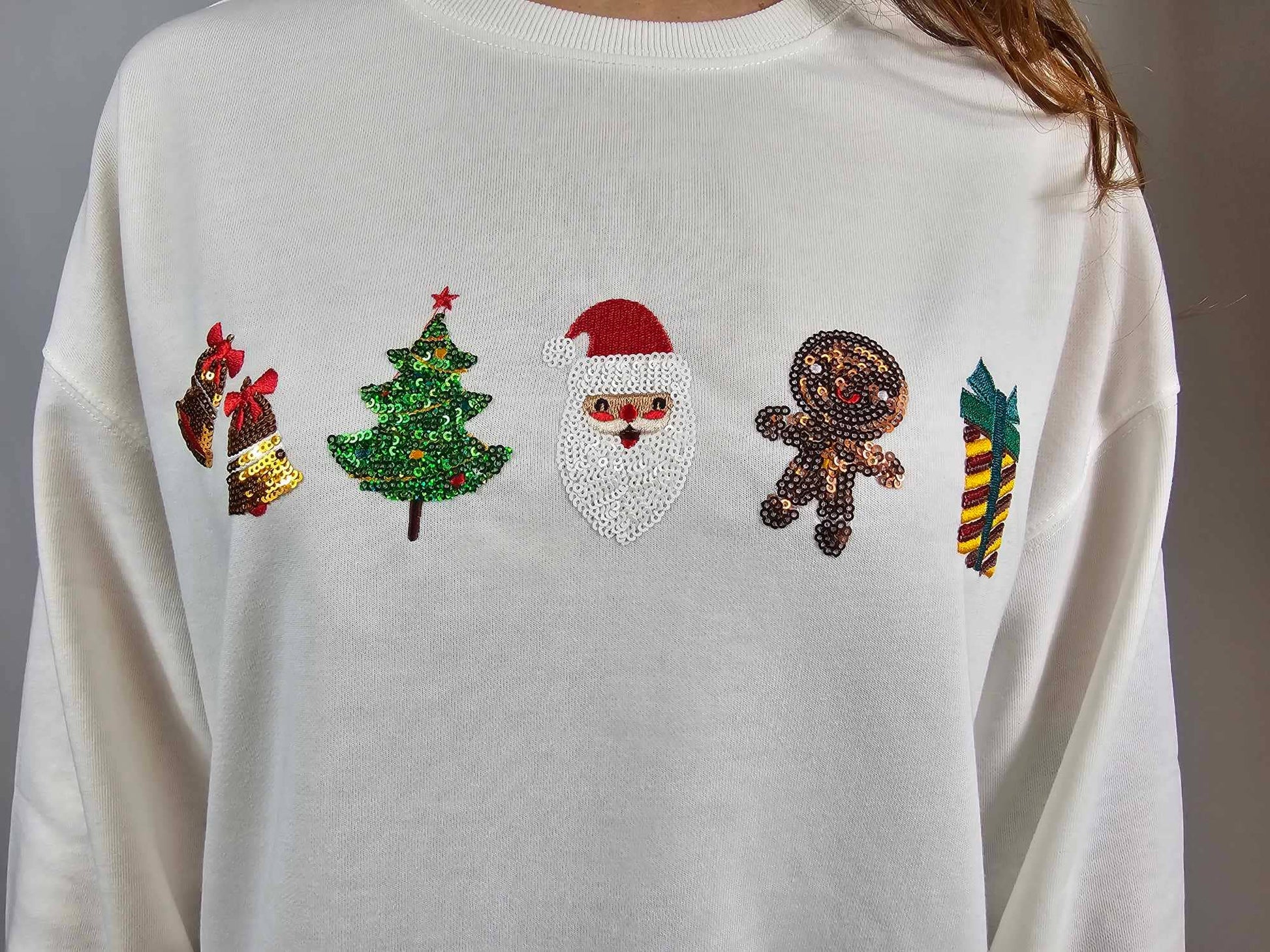 Pair it with high-waisted jeans or a festive skirt for a cute and stylish holiday look!