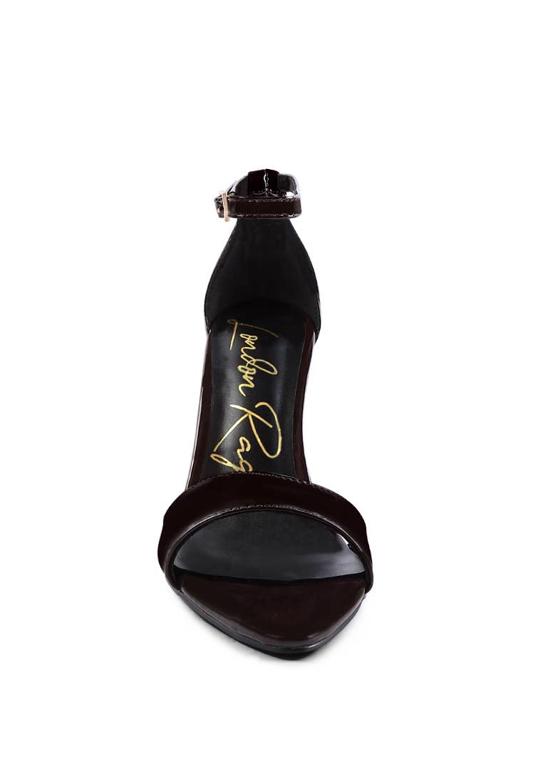 Glossy, and snazzy, the sandals have an ankle strap and an open pointed toe. The stiletto heels give it that sexy allure, and the soft innersole cuts stress. Overall, the sandals are an ideal choice for a cocktail party. Upper material: Patent PU Lining Material: Polyurethane Outer Sole: TPR Open Pointed Toe Lightly Cushioned Insole Ankle Straps Pin Buckle Fastening Stiletto High Heels