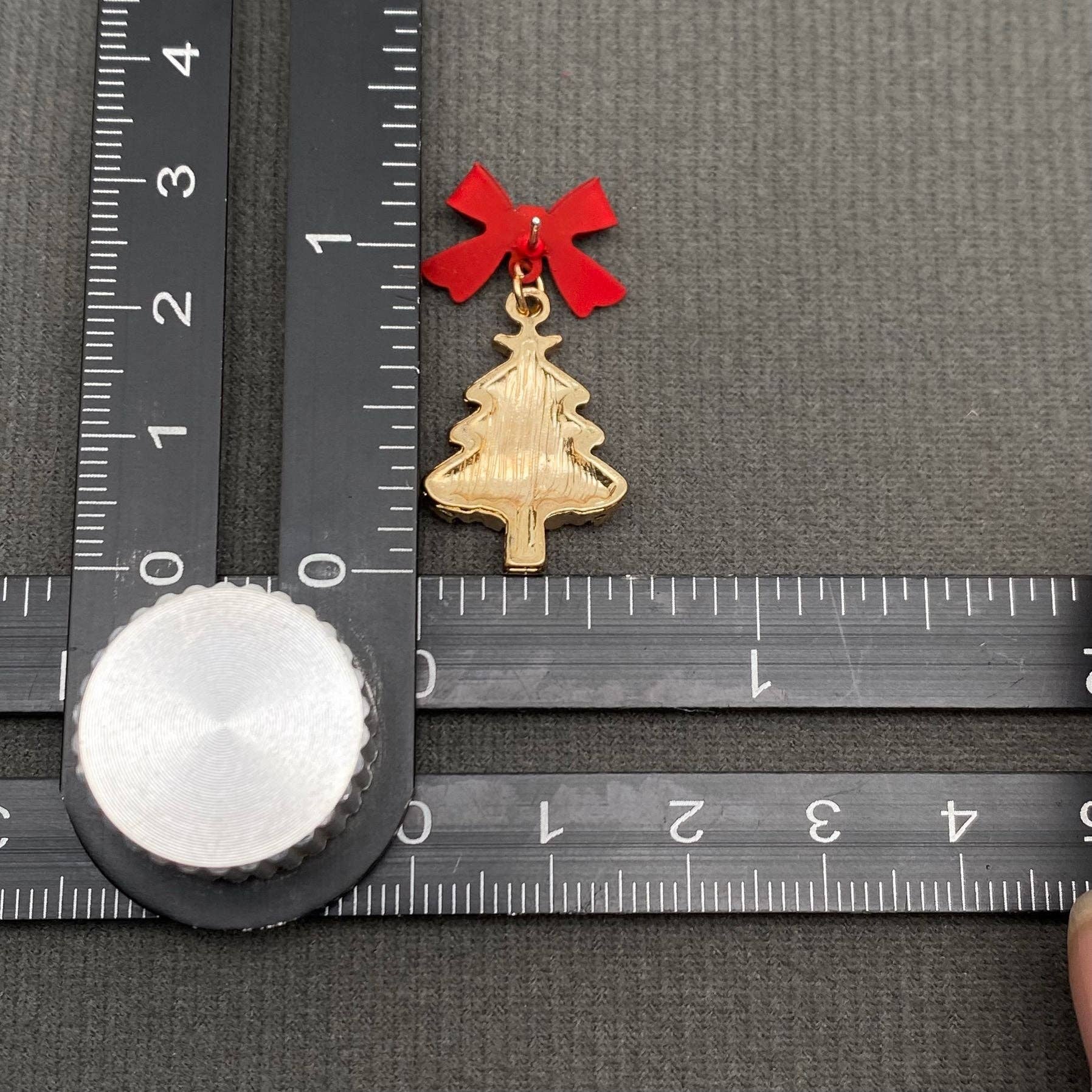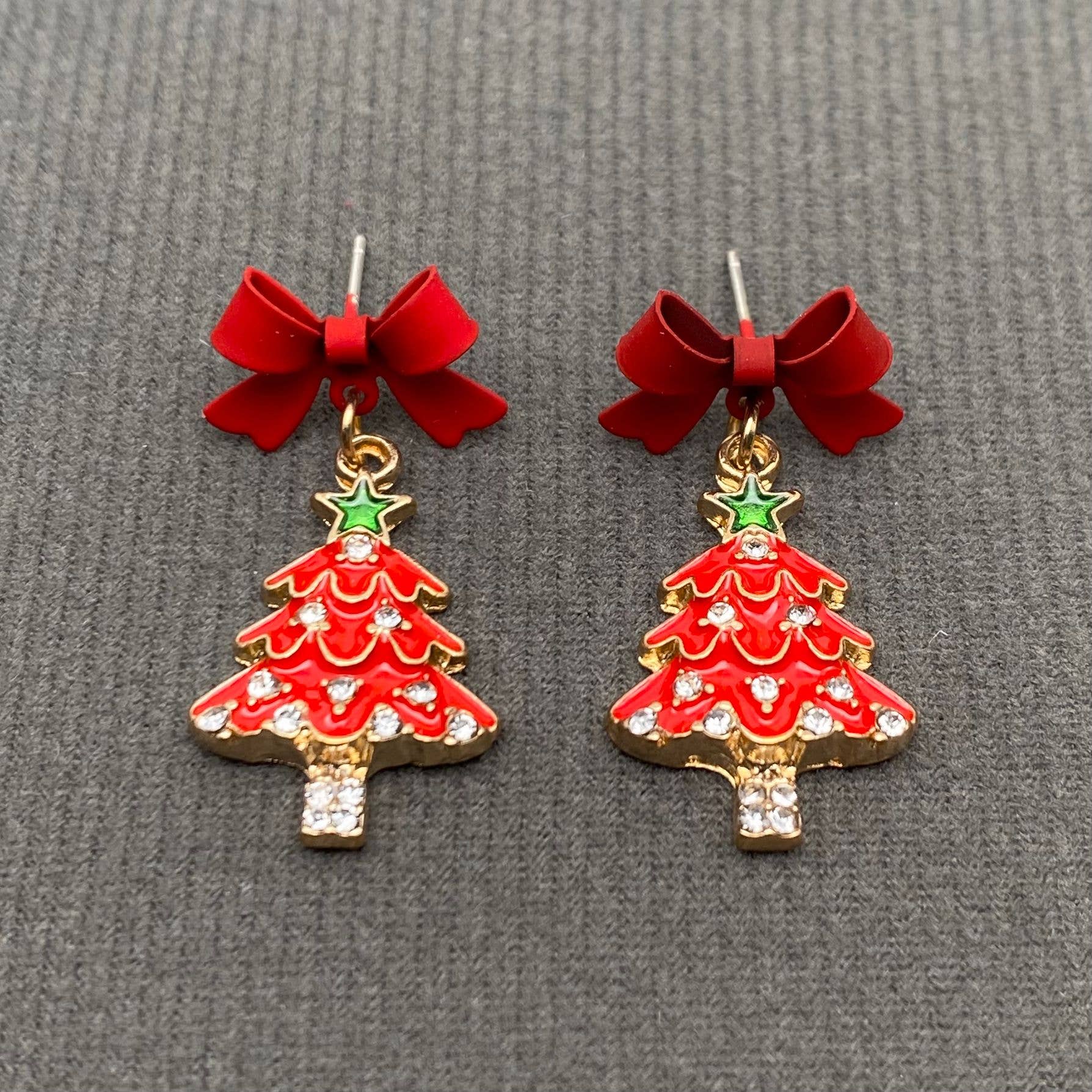 Rhinestone Red Enamel Christmas Tree Bow Post Earrings