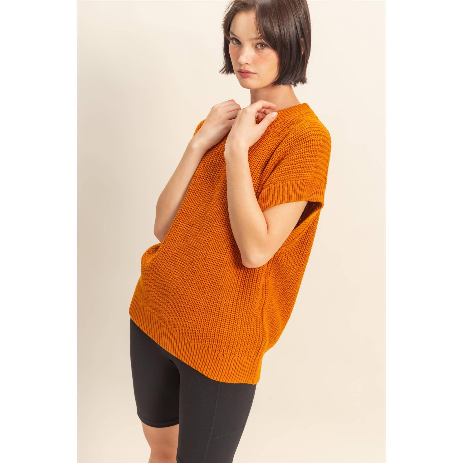 Short Sleeve Oversized Casual Sweater ~ Caramel