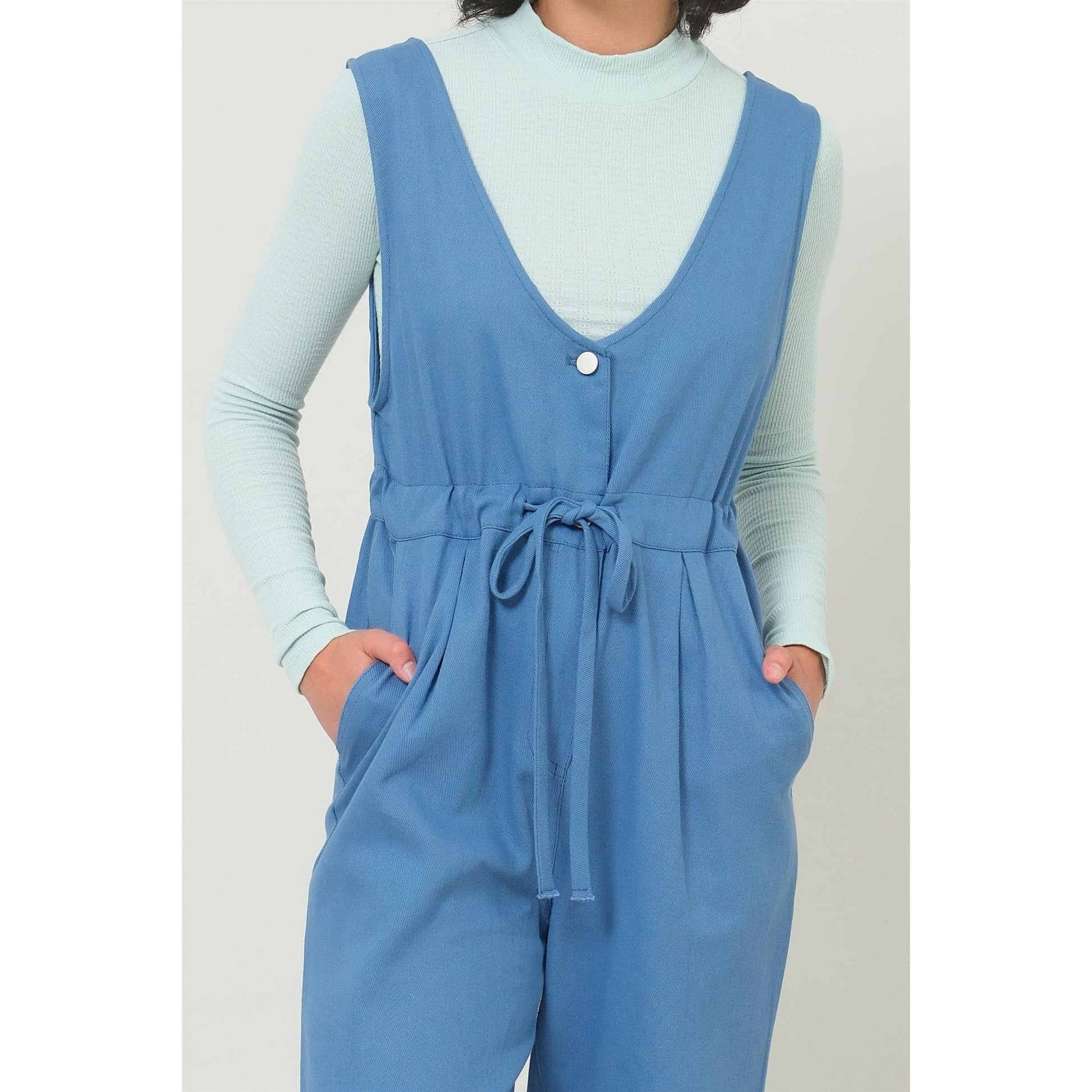 This Jumpsuit Is Made From Cotton Twill And Has A Drawstring So You Can Cinch The Waist. A Button Closure Adorns The Sleeveless Bodice, While The Relaxed Pants Are Finished With Side And Back Pockets. A Hidden Zip Fly Is Added. 100% Cotton Model Is 5' 7" Tall, 32" Chest, 25" Waist And 36" Hips And Wearing A Size Small Imported. Designed In The USA